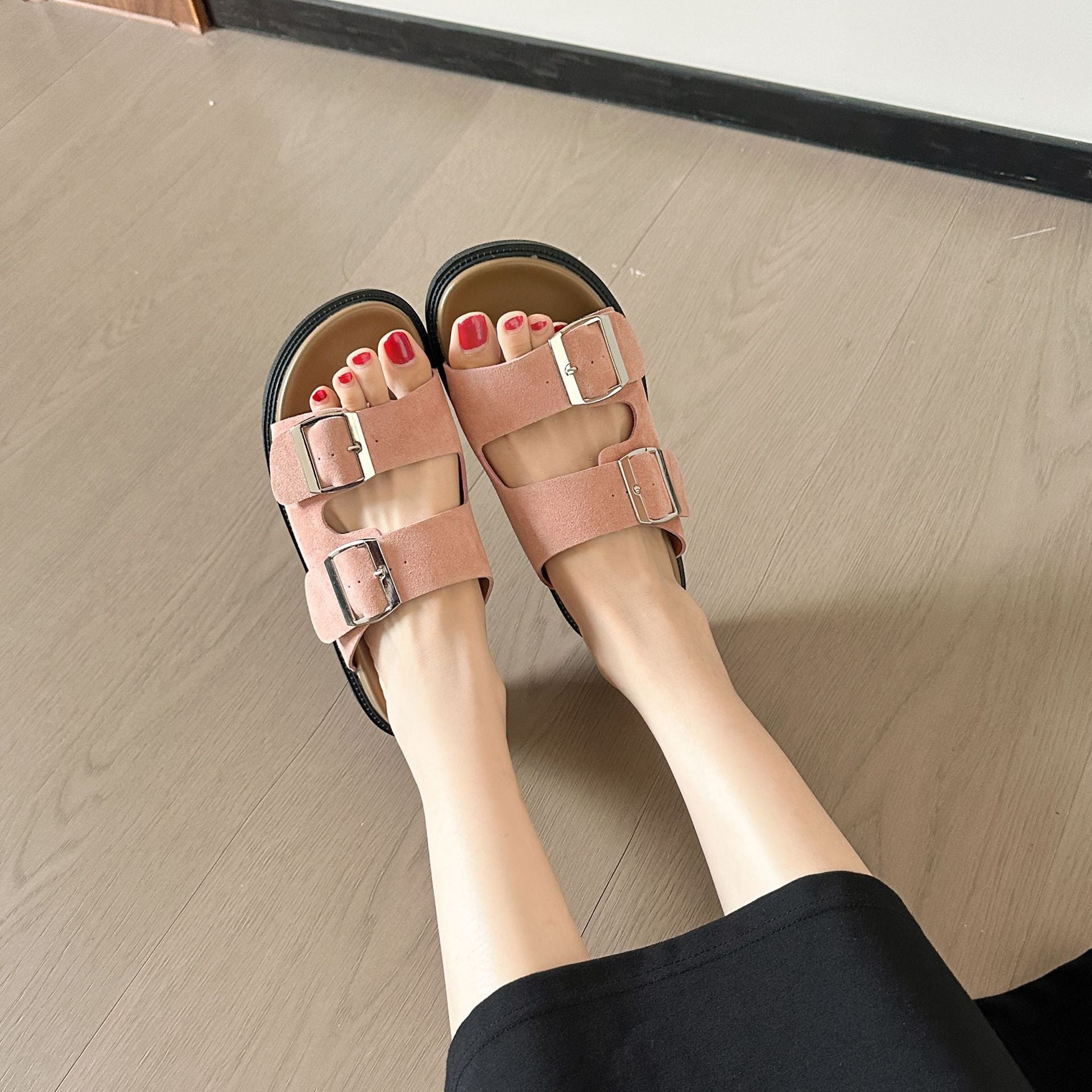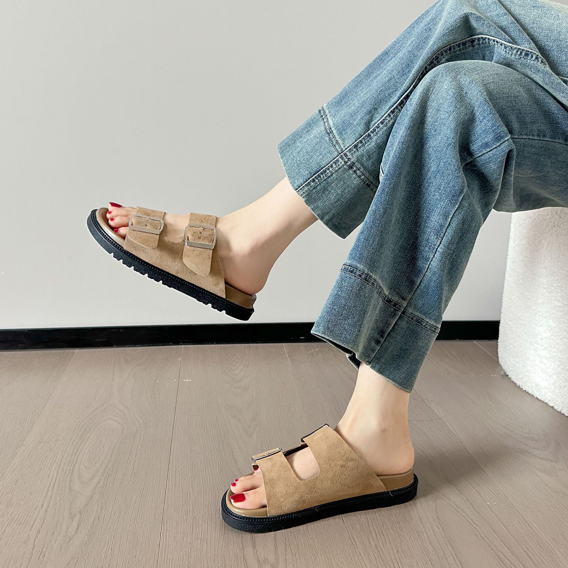Fattened Plus Size Fashion Summer Flat Strap Square Buckle Slippers