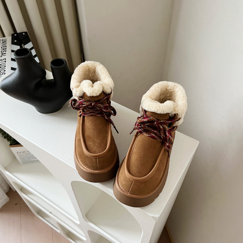 Fleece Lining Muffin Platform Winter Wool Short Snow Boots