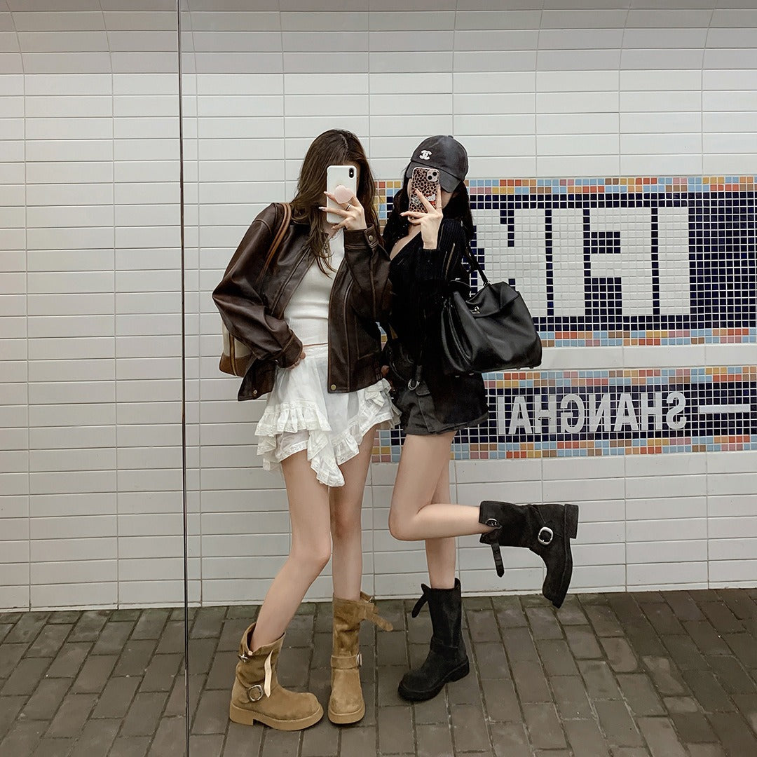 Glutinous Thick Bottom Motorcycle Buckle Ankle Boots