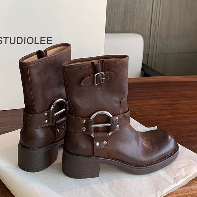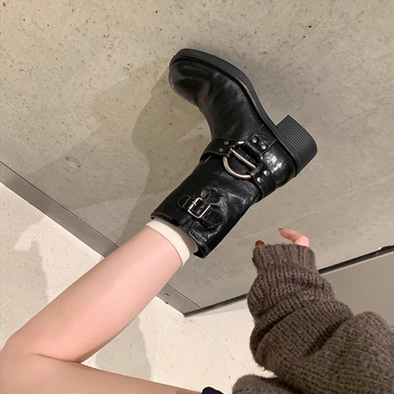 Grape Mom Punk Sweetheart Metal Buckle Round Toe Vintage Boots