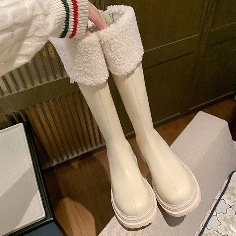 Grape Mom White With Fleece Lining Furry Platform Long Boots