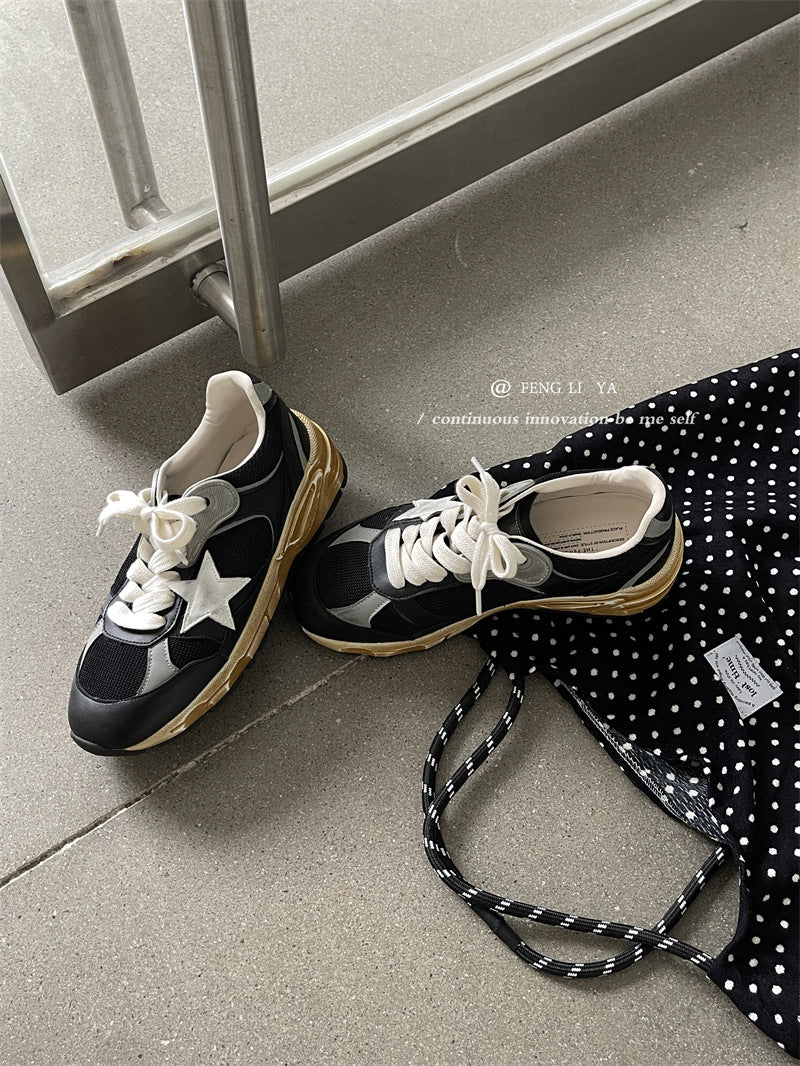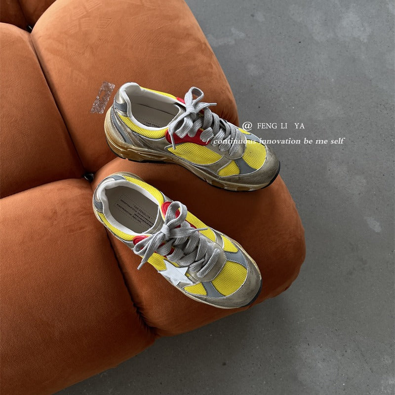 Handmade Old Thick Bottom Versatile Dirty Mesh Bright Sneakers