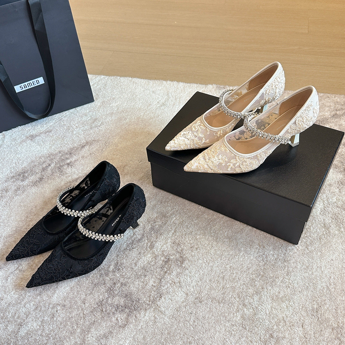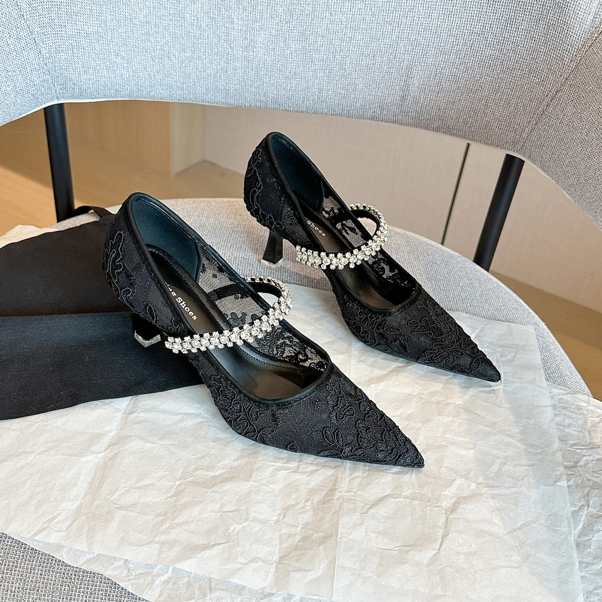 Lace Pointed Toe High Pumps Rhinestones Women's Shoes