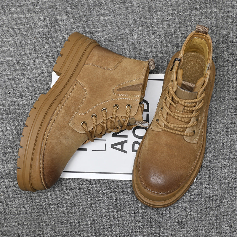 Men's Bottom Height Increase Device Car Style Pure Black Boots