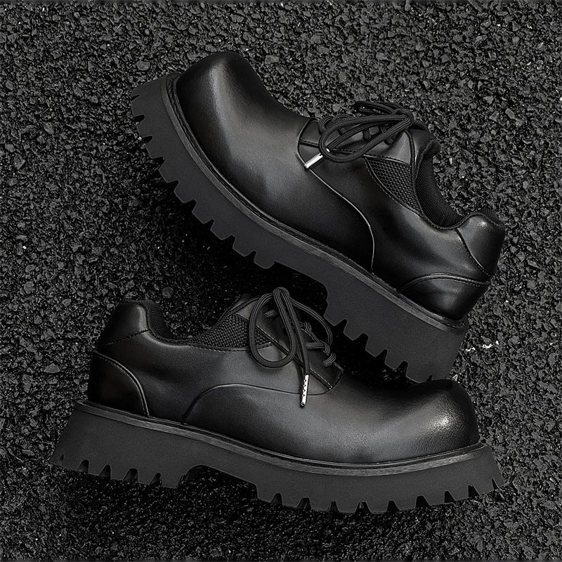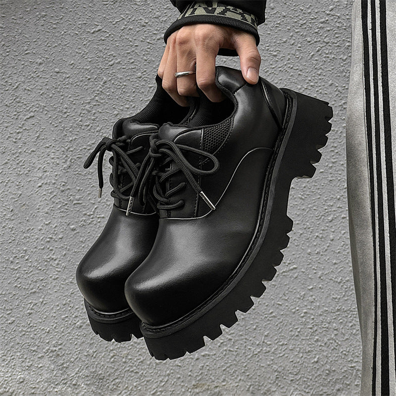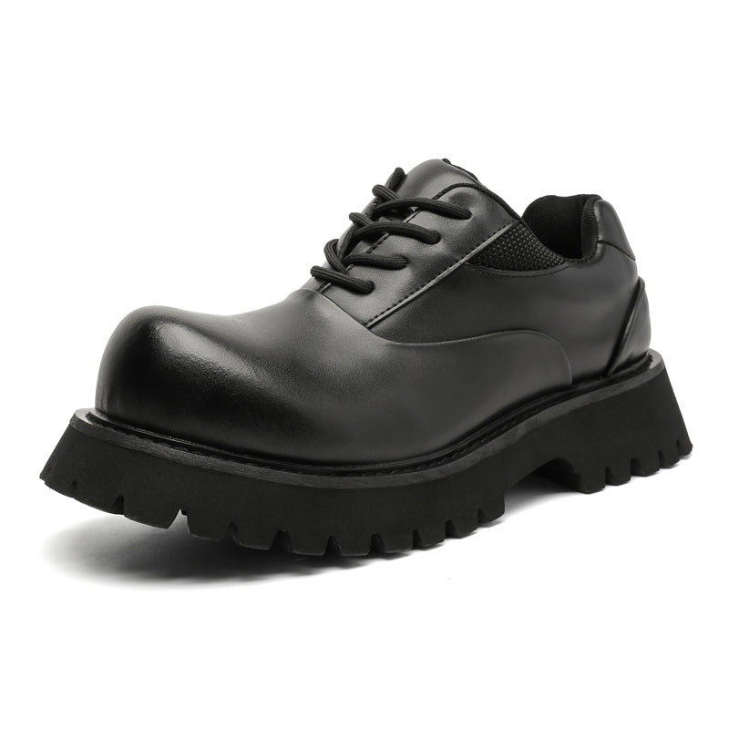Men's Bottom Large Warped Head Derby British Height Increasing Leather Shoes