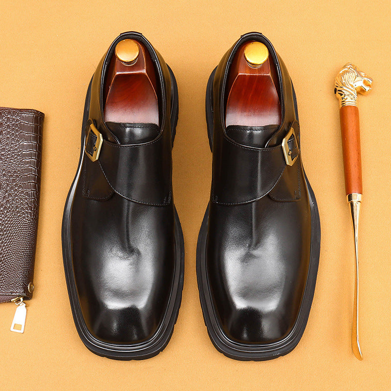 Men's Business British Retro Platform Buckle Monk Leather Shoes