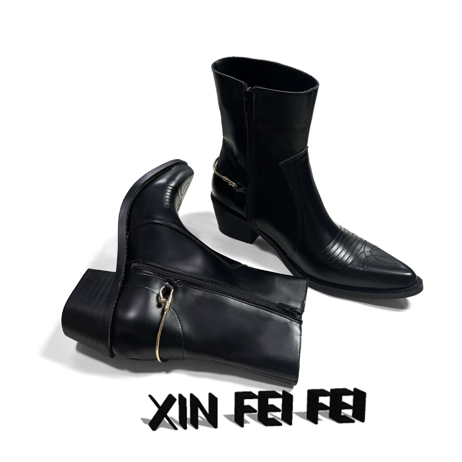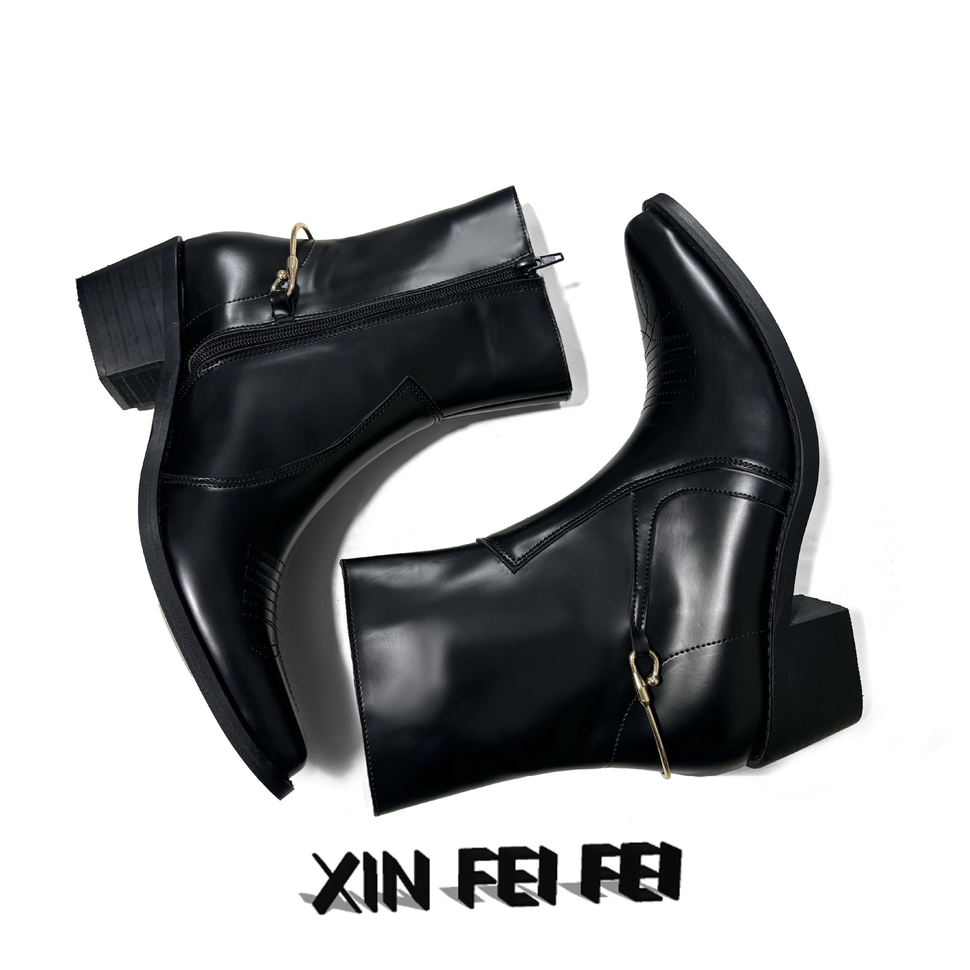 Men's Chelsea Black Personalized Fashion Side Zip Boots