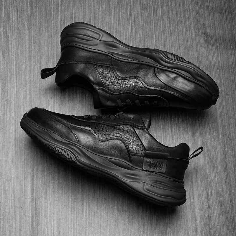 Men's Classy Comfortable Black Genuine Thick-soled Leather Shoes