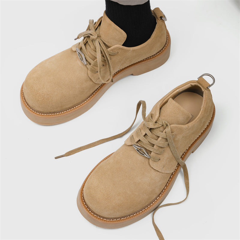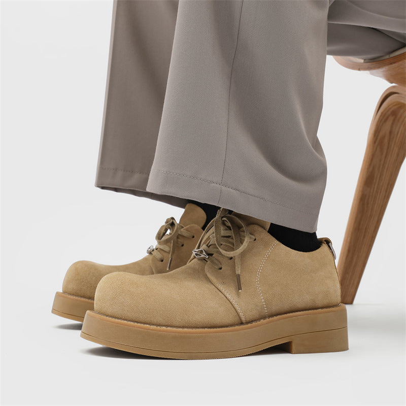 Men's Derby Mickey Big Head Thick Bottom Increased Low Top Leather Shoes