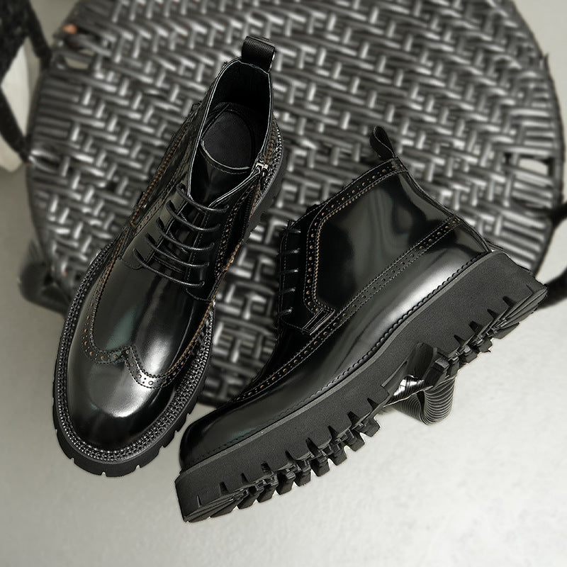 Men's Genuine British Brogue Thick Bottom Height Boots
