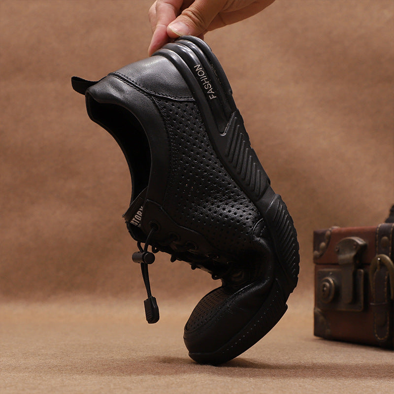 Men's Layer Cowhide Mesh Comfortable Business Pumps Leather Shoes