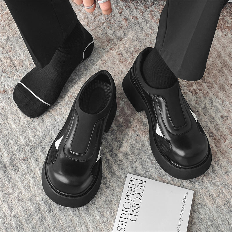 Men's Niche Color Collision Design Derby Platform Slip-on Leather Shoes