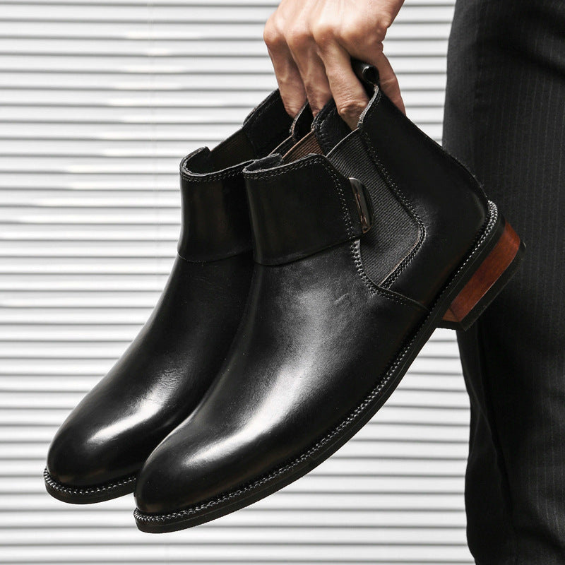 Men's Short Sleeve Cowhide Surface Wooden Bottom Boots