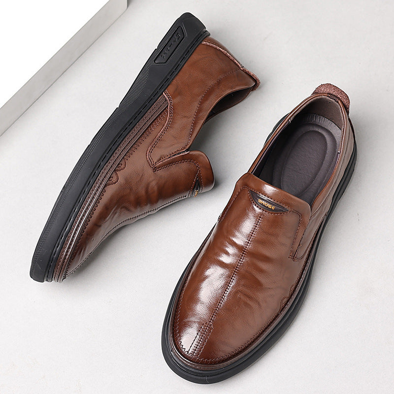 Men's Spring First Layer Cowhide Soft Bottom Surface Casual Shoes