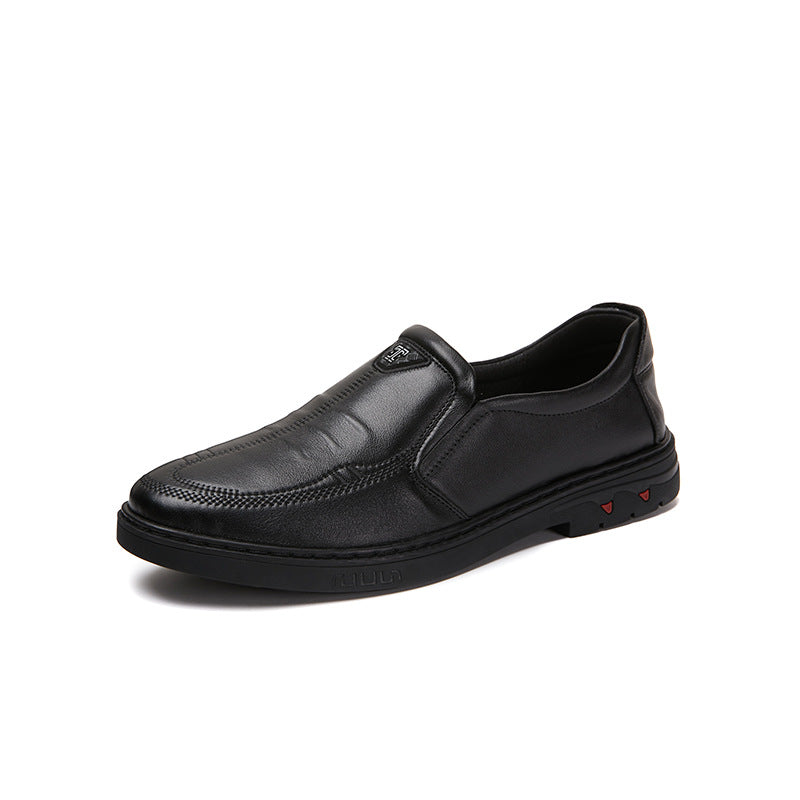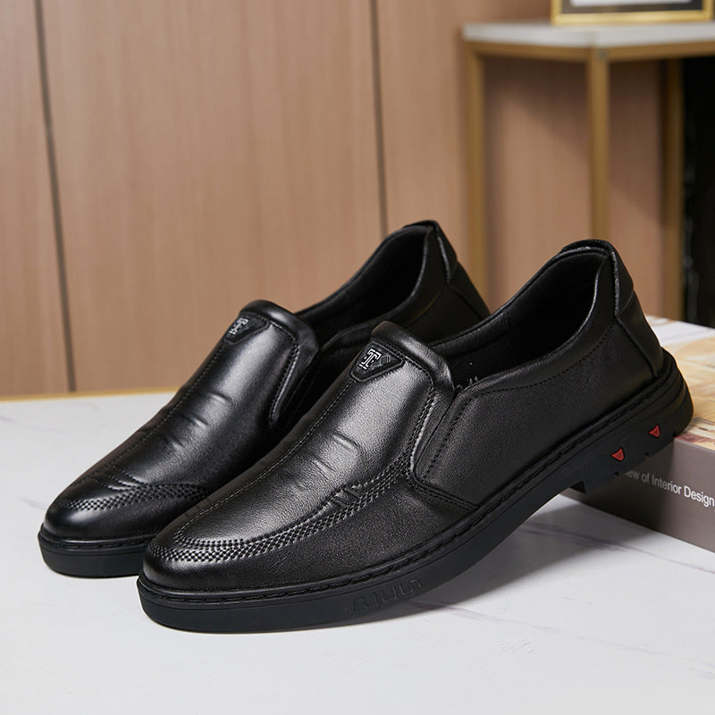 Men's Spring Genuine Slip-on Electric Embroidery Embossed Leather Shoes