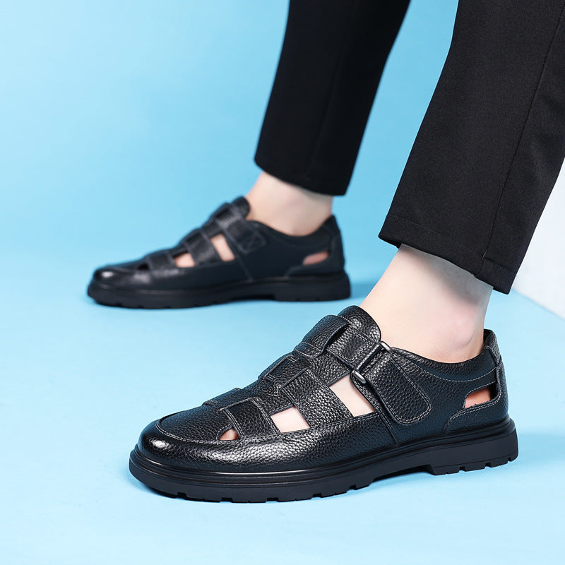 Men's Summer Closed Toe Genuine Dad Cowhide Sandals