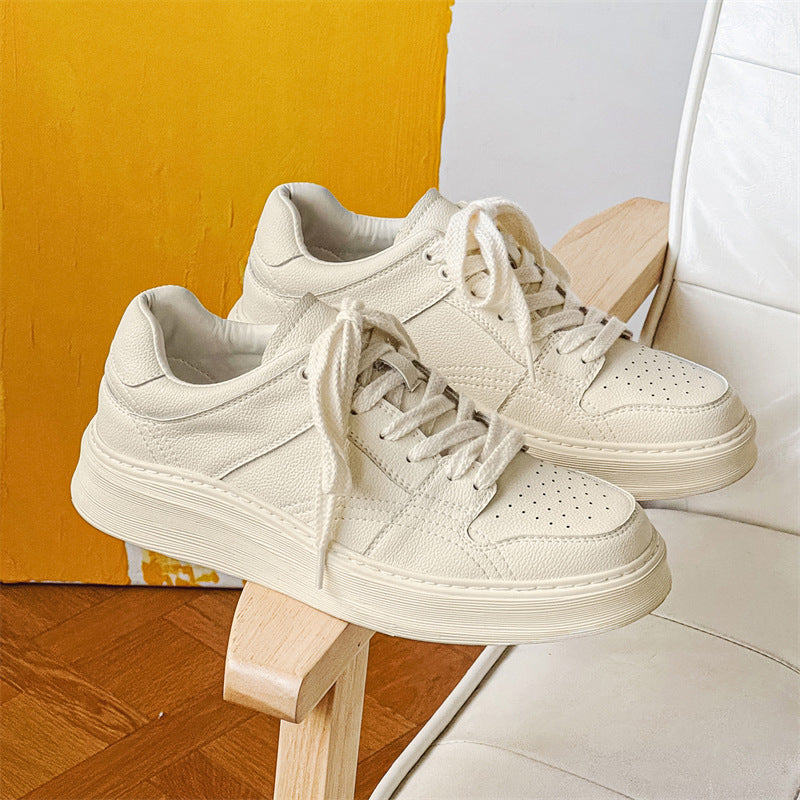Men's White Trendy Campus Lovers Bread Leather Shoes