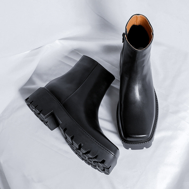 Niche Square Toe Chunky Platform Side Zipper Chelsea Boots
