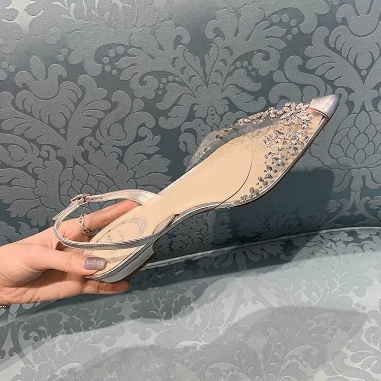 Pointed Toe Transparent Rhinestone Pumps Outdoor Fashion Sandals