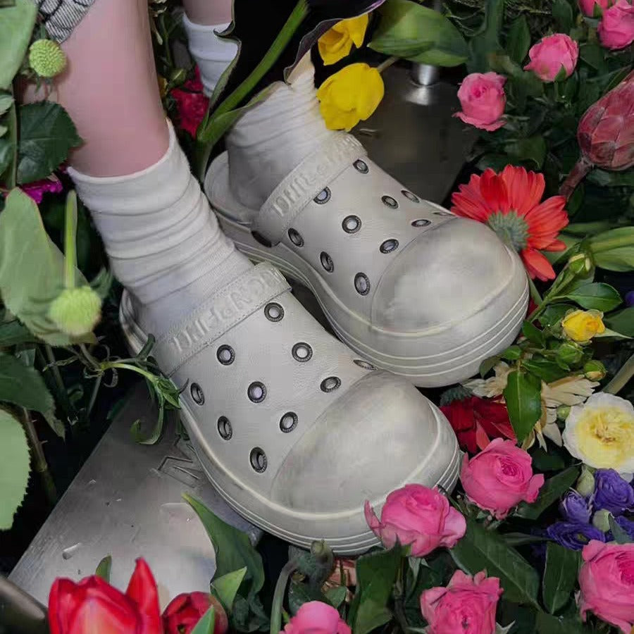 Retro Style Hole Summer Thick Bottom Toe Slippers