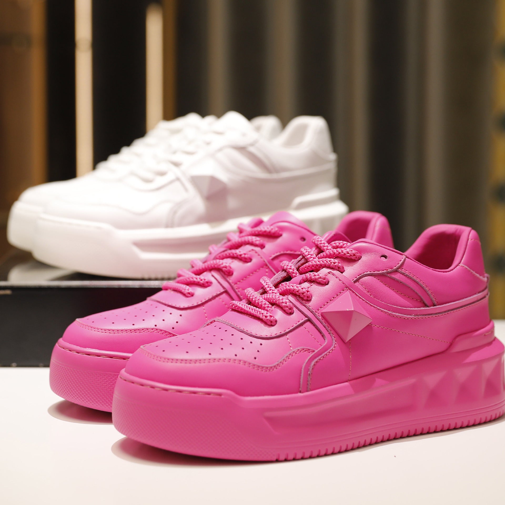 Rose Red Rivet Sports Platform Heightened Sneakers
