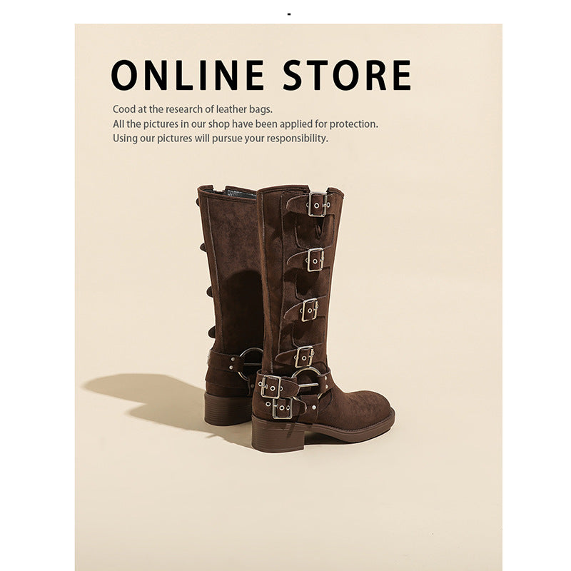 Suede Cow Vintage Knight Belt Buckle High Below The Boots