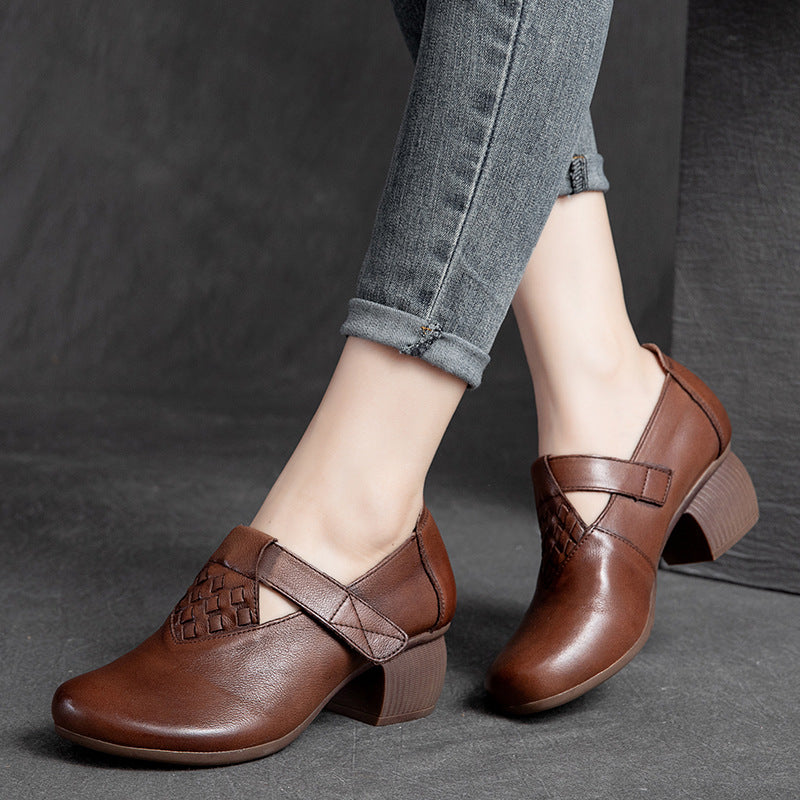 Velcro Woven Round Toe Brushed Retro Casual Shoes