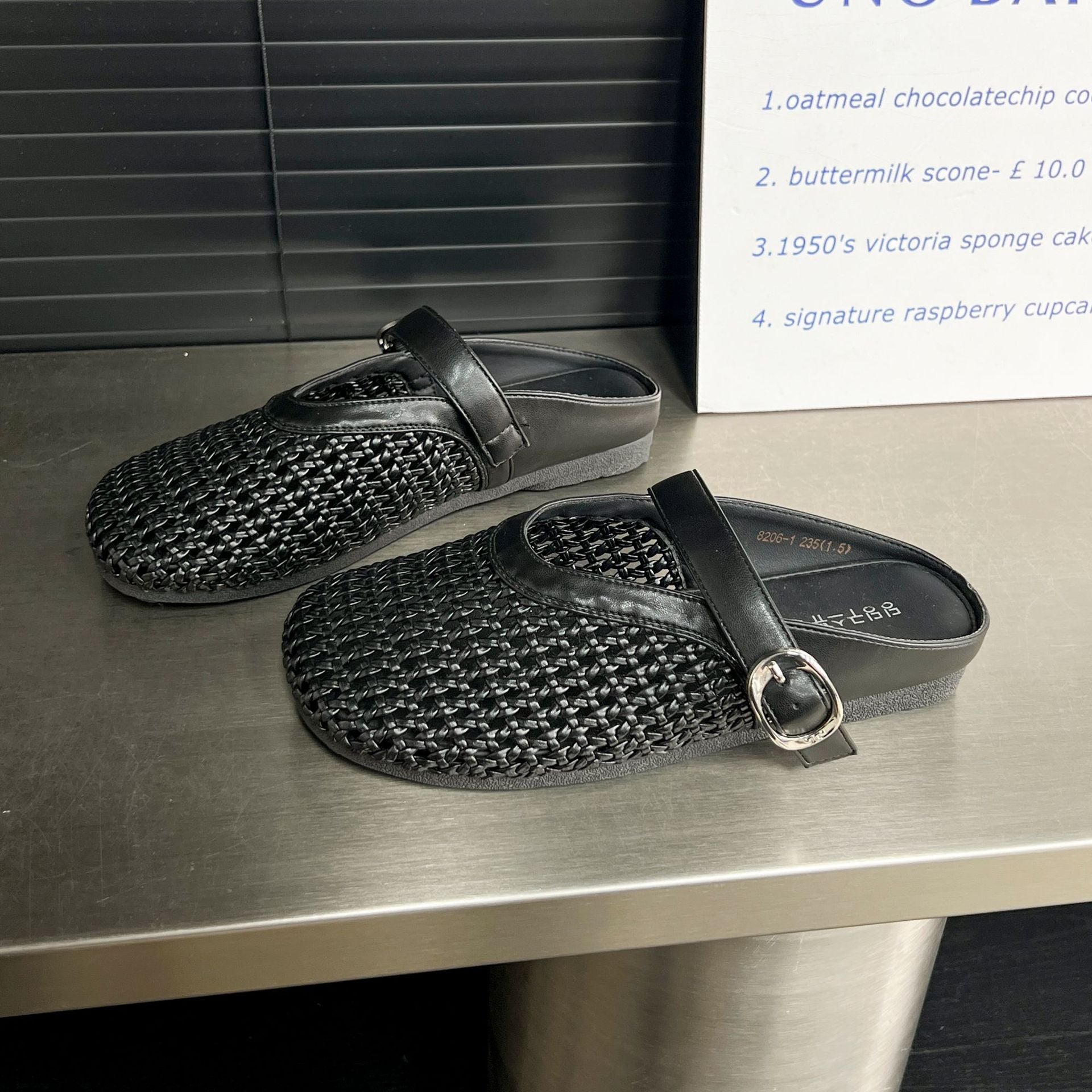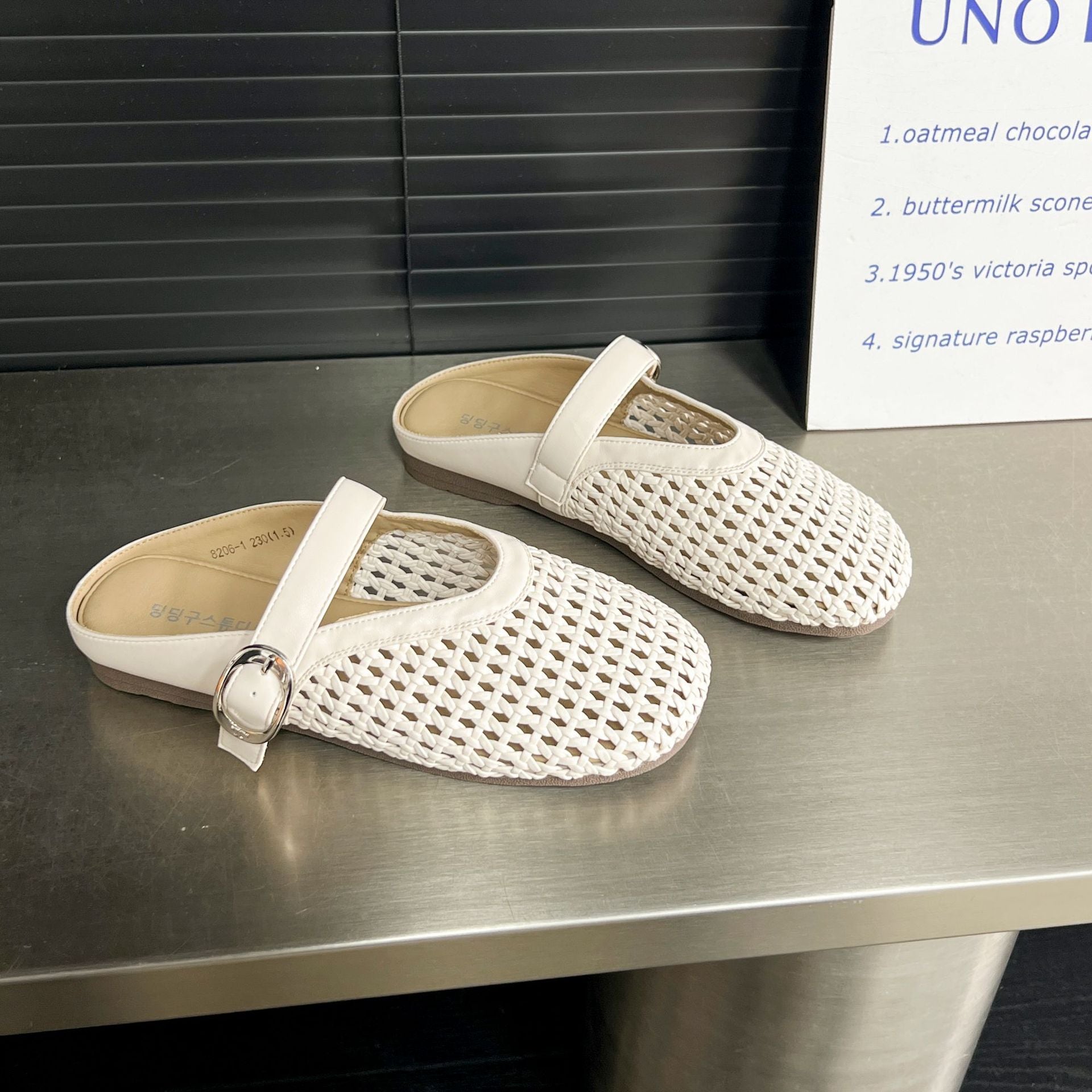 Women's Authentic Weave Hollowed Toe Box Half Slippers