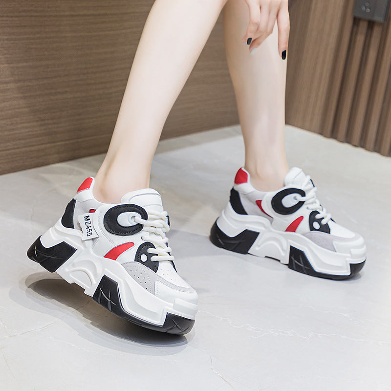 Women's Black White Height Increasing Insole Platform Dad Sneakers