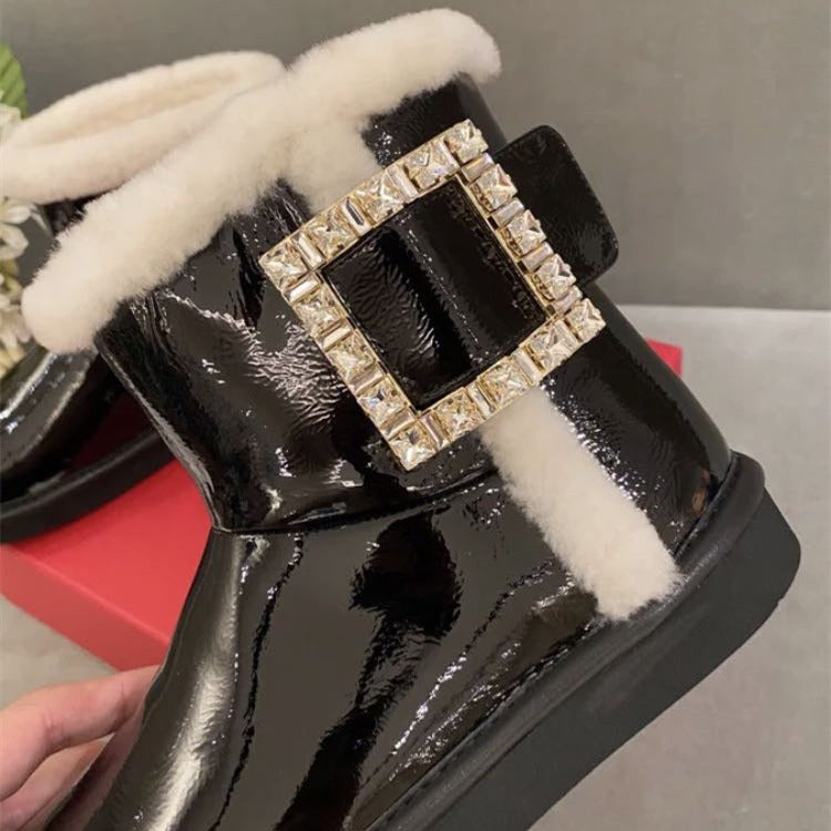 Women's Buckle Winter Flat Bottom Fleece-lined Short Women's Shoes