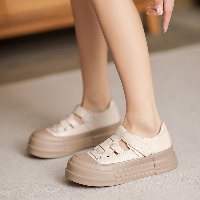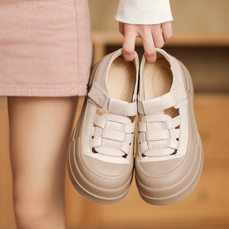Women's Cap Hollow First Layer Cowhide Pitcher Sandals