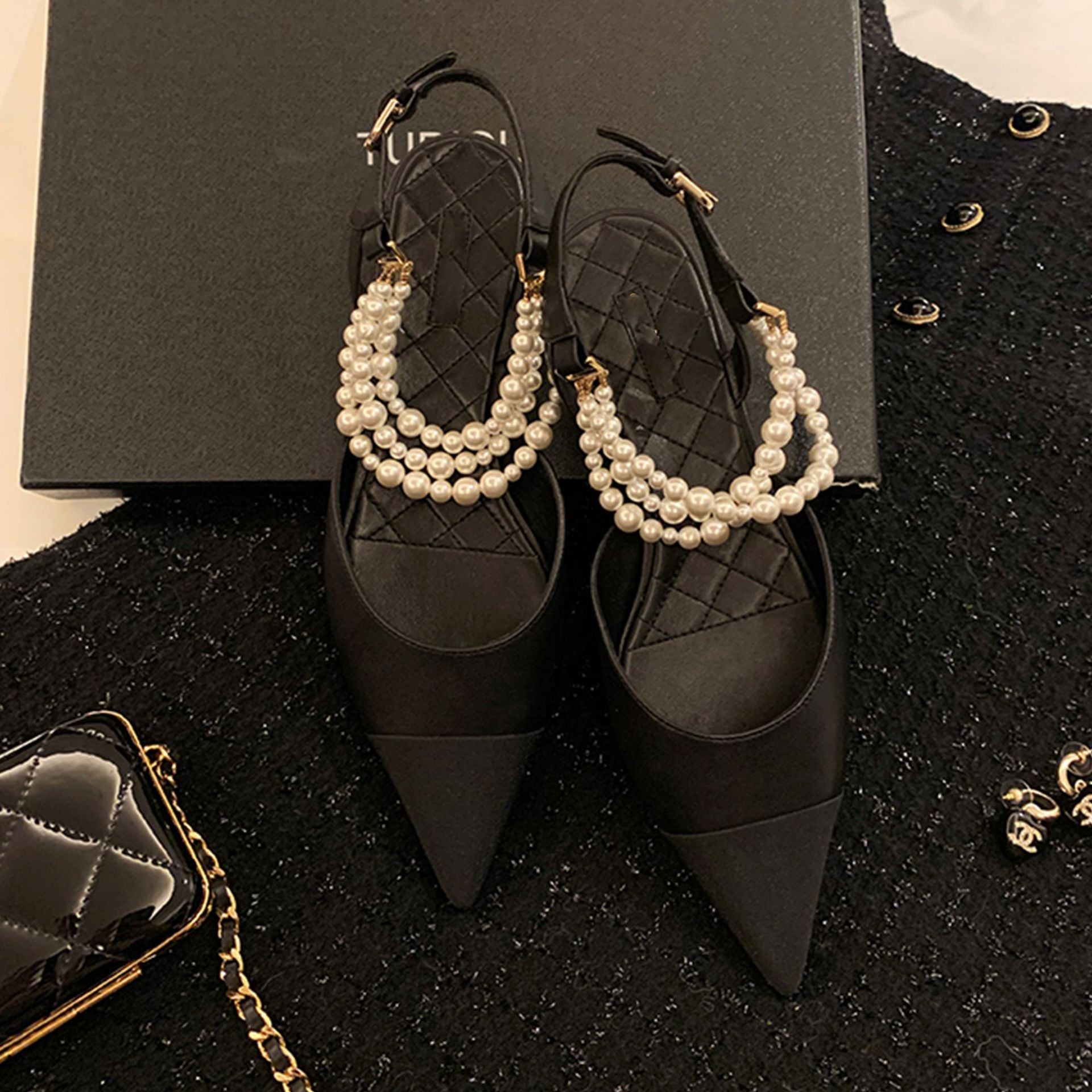 Women's Chain Color Matching Small Chunky Buckle Pointed Women's Shoes
