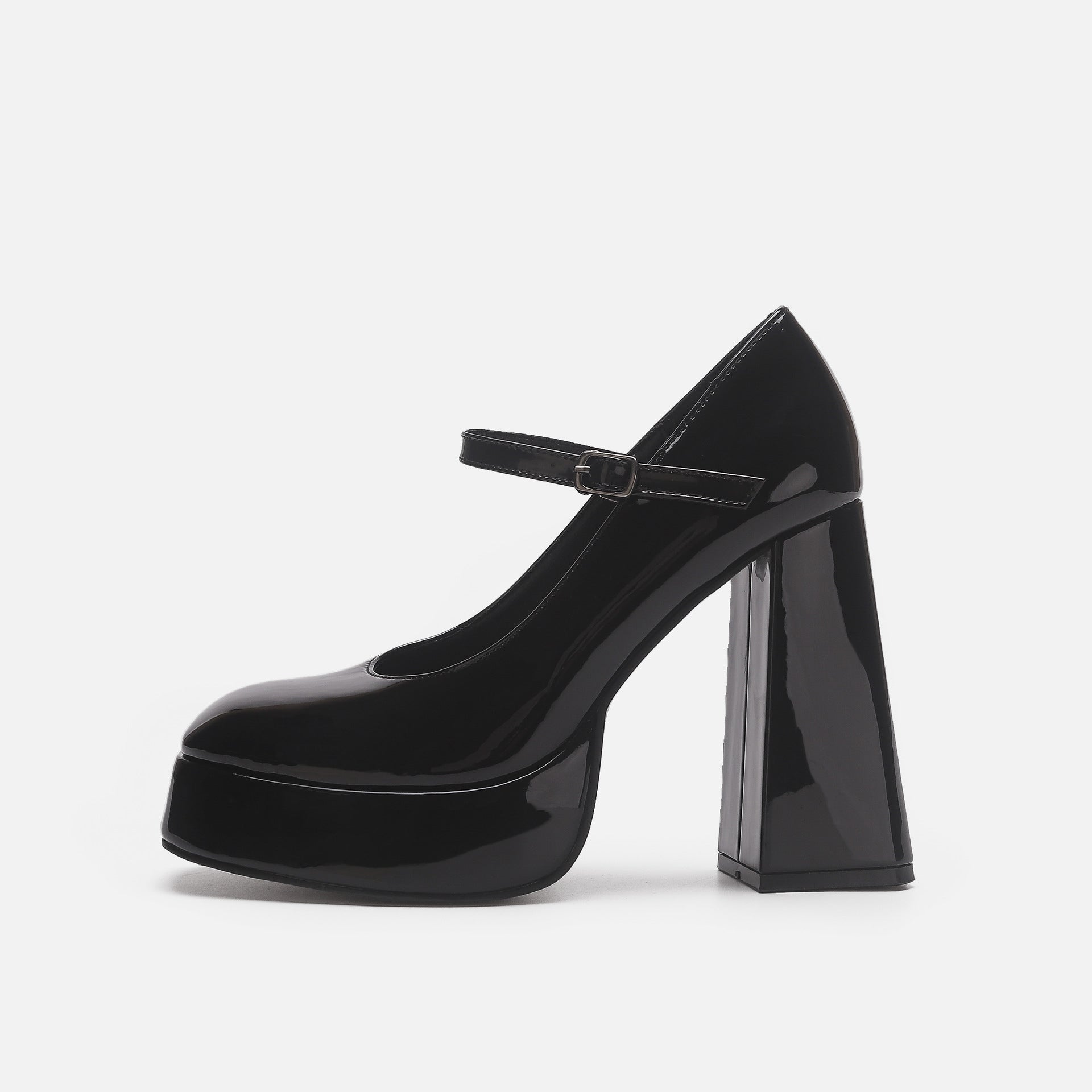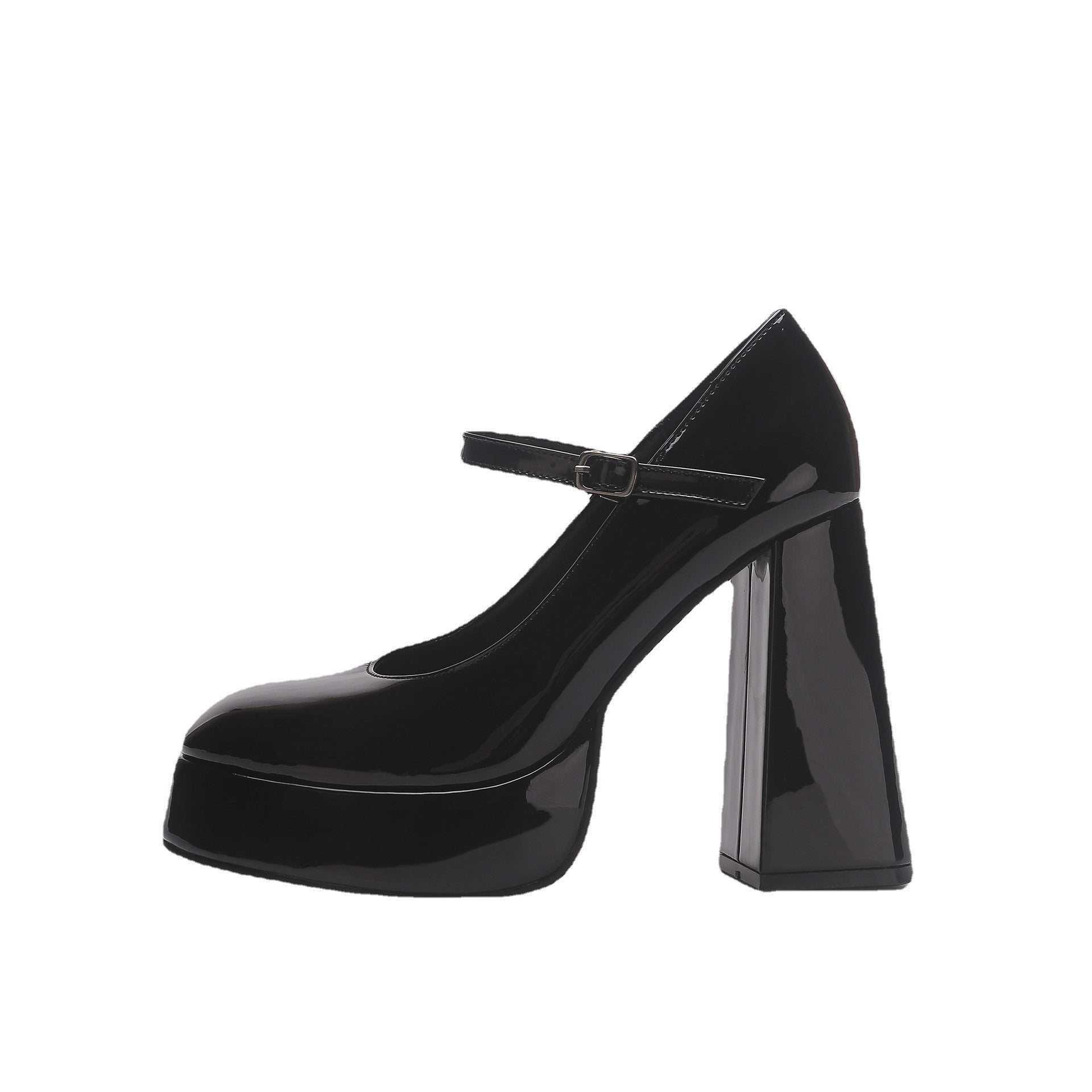 Women's Chunky Mary Jane High Single-layer Bridesmaid Leather Shoes