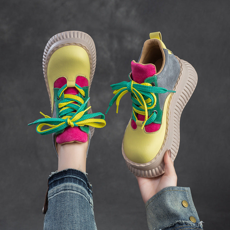 Women's Contrast Color Platform Dad Small Heightened Casual Shoes