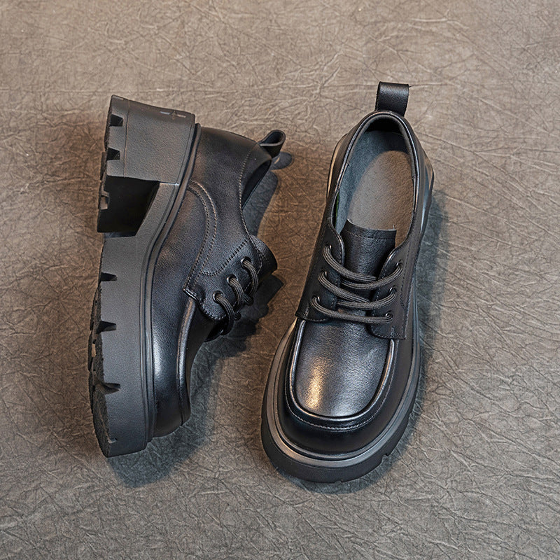 Women's Cowhide Authentic Platform Thick Bottom Lace Casual Shoes