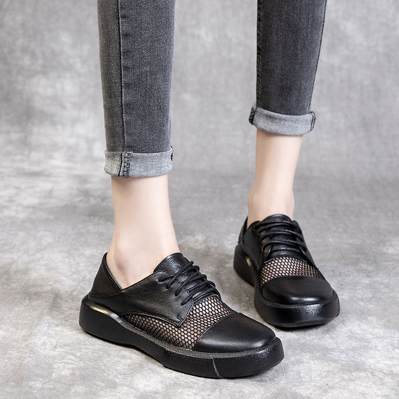 Women's Cowhide Hollow Summer Rivet Fish Mouth Sandals
