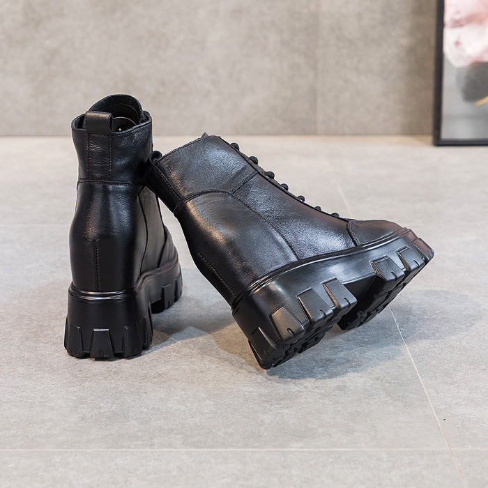 Women's Cowhide Platform Martin Height Increasing Insole Boots