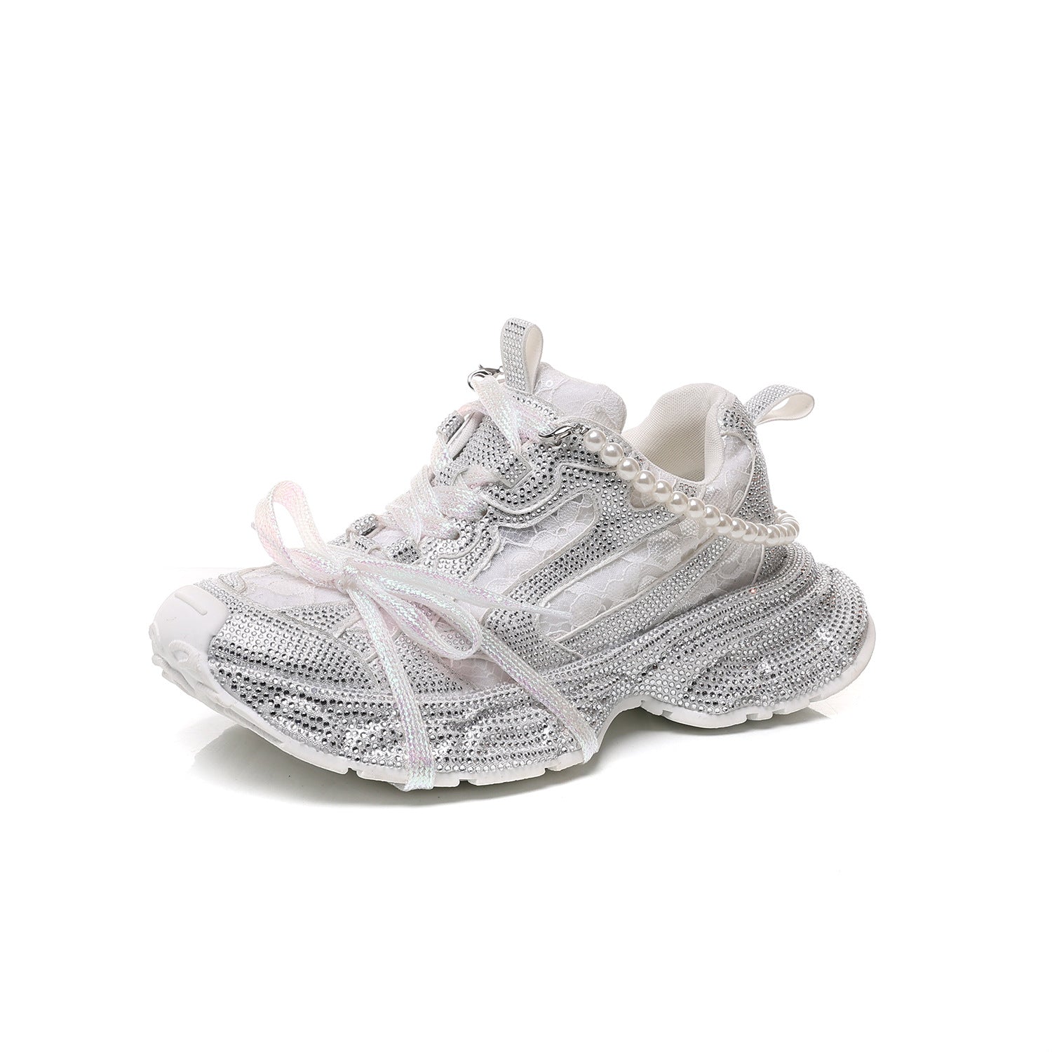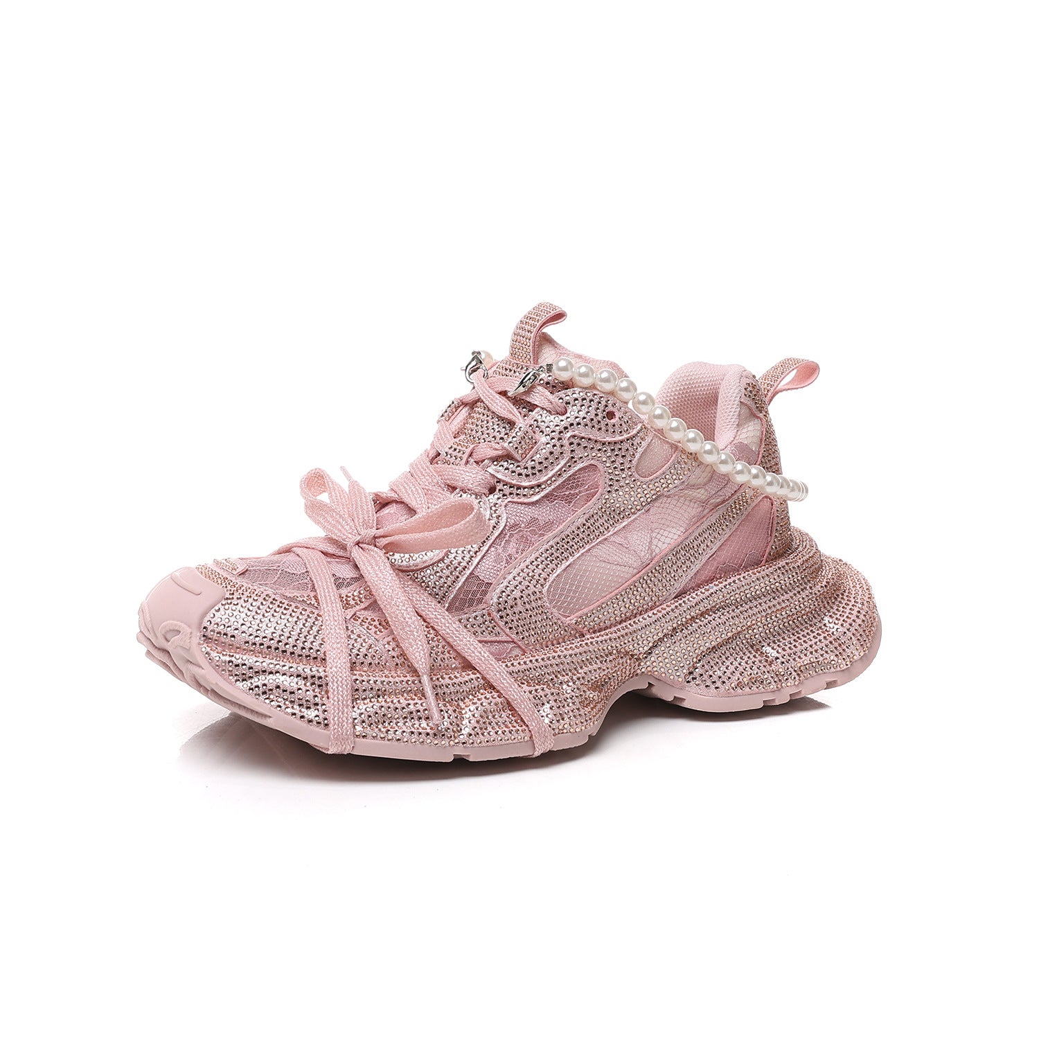Women's Crystal Full Diamond Mesh Ice Feeling Breathable Type Dad Sneakers