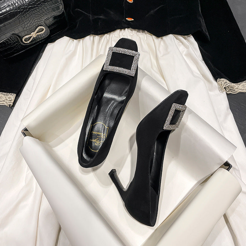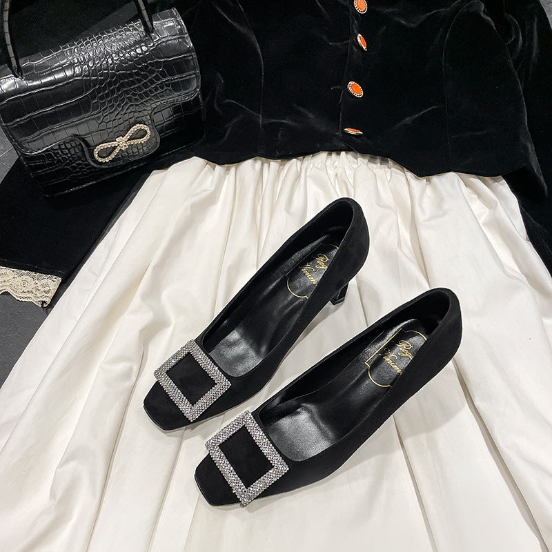 Women's Dignified Rhinestone Square Buckle Professional Commuter Women's Shoes