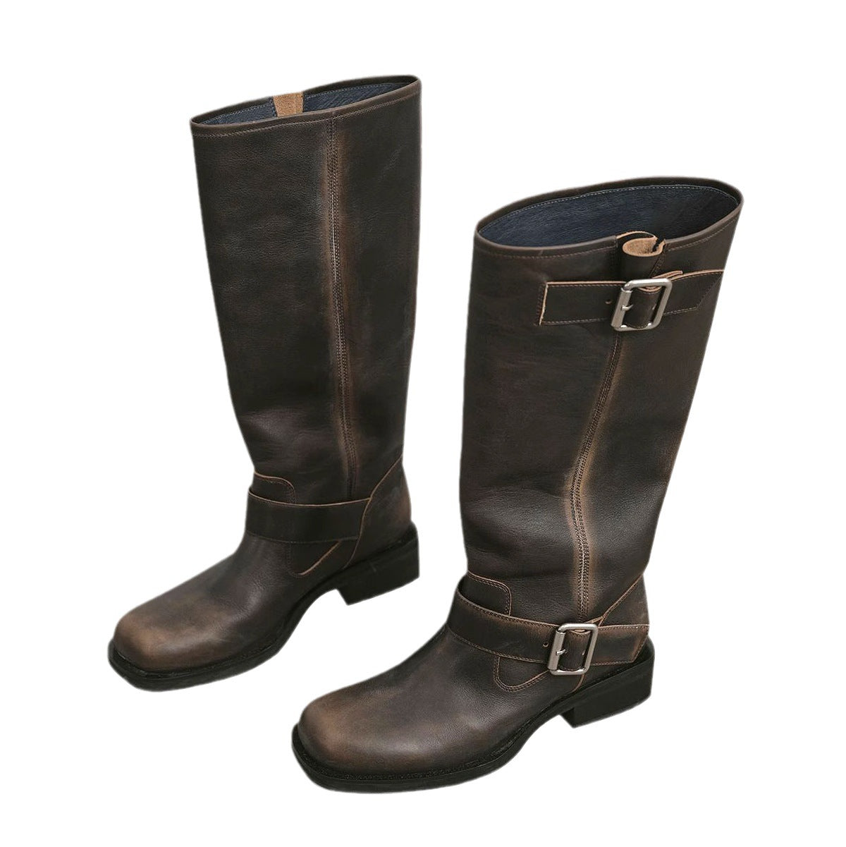 Women's Distressed Long Chunky Belt Buckle Slimming Heels