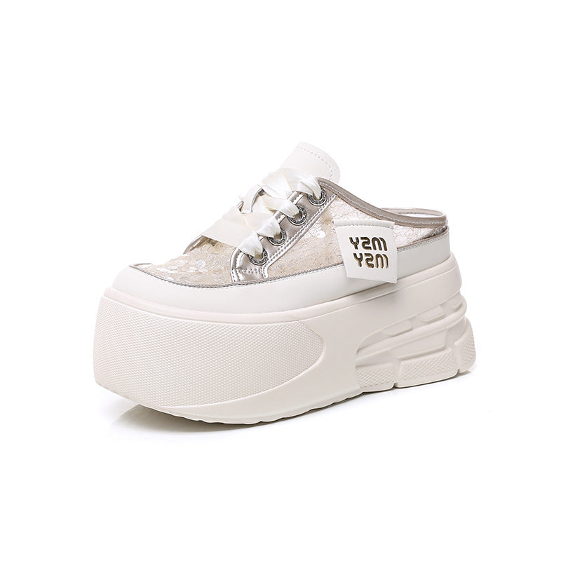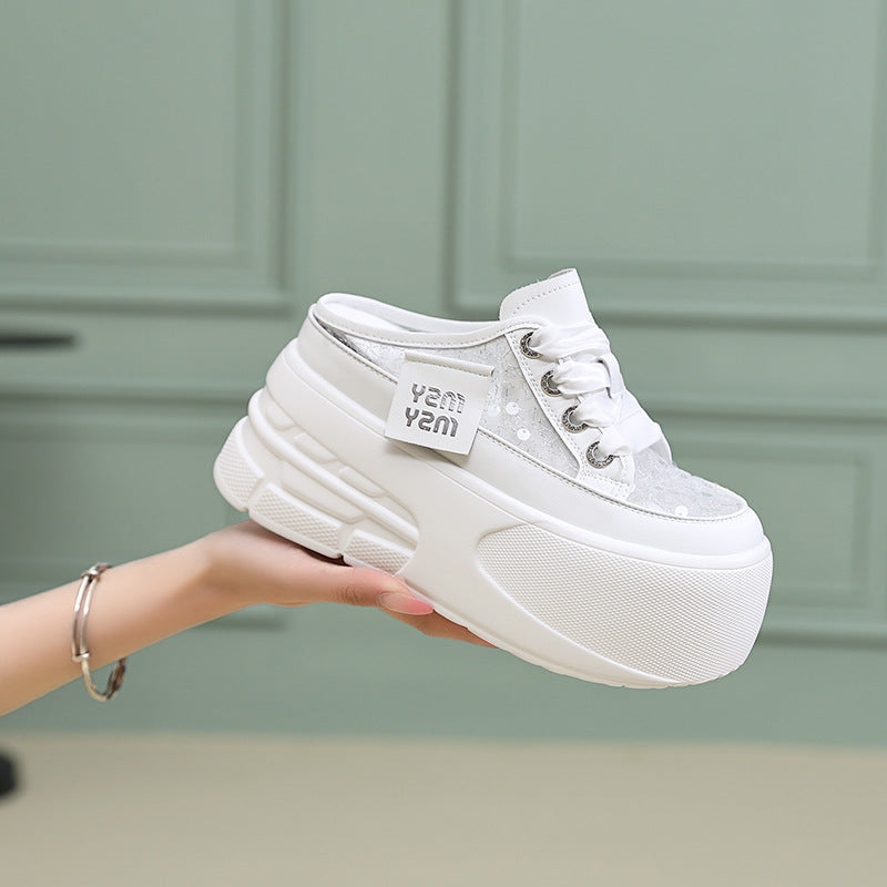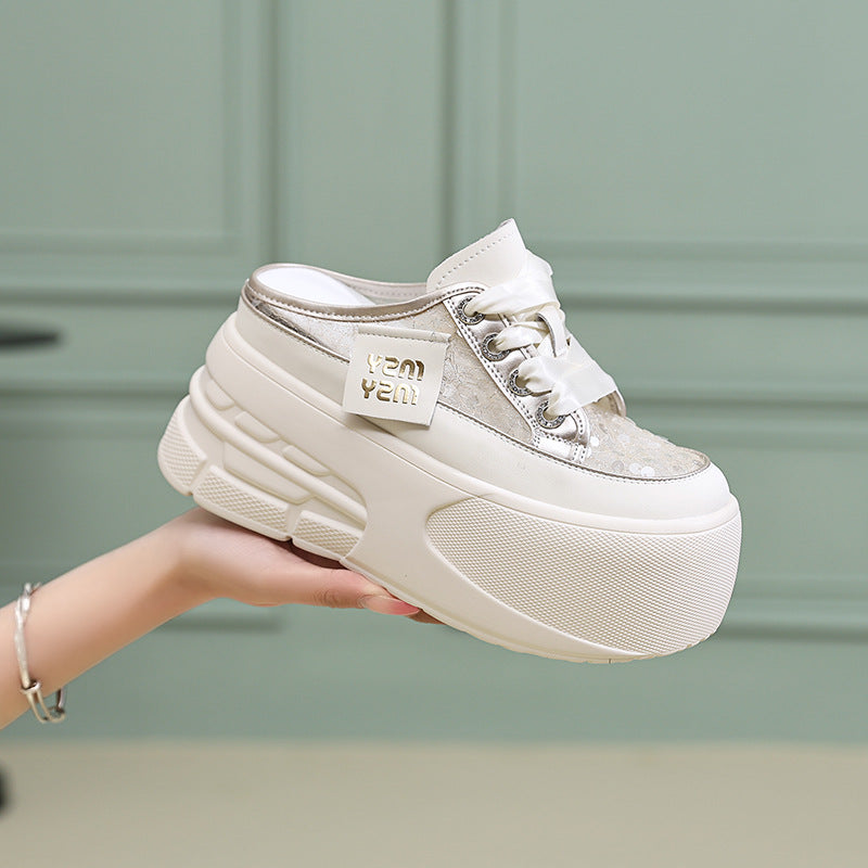 Women's Fashion Sequin Gauze Breathable Outer Wear Thick Bottom Sandals
