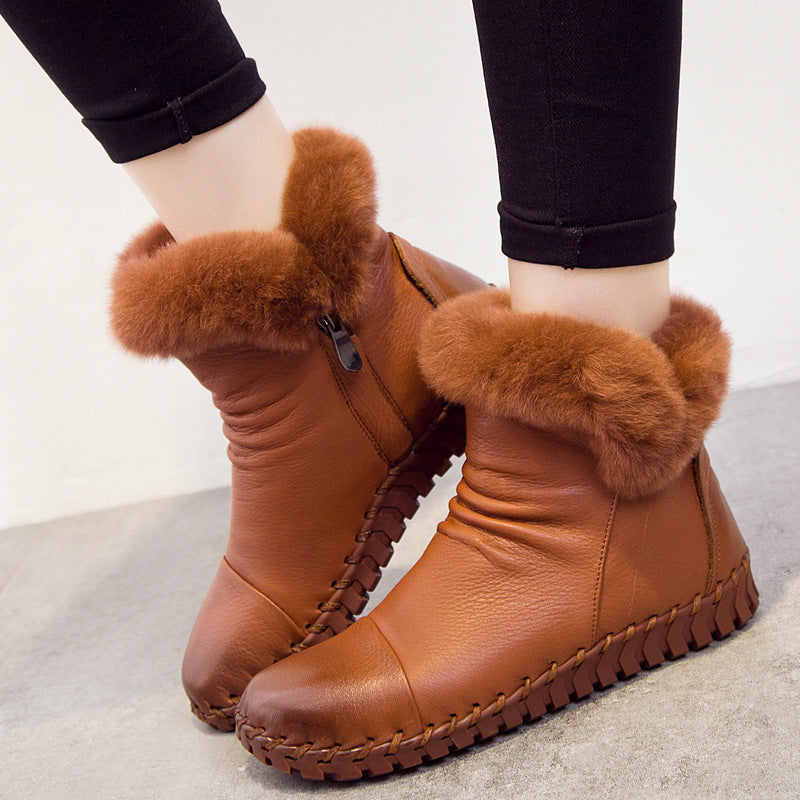 Women's First Layer Cowhide Cotton Rex Rabbit Women's Shoes