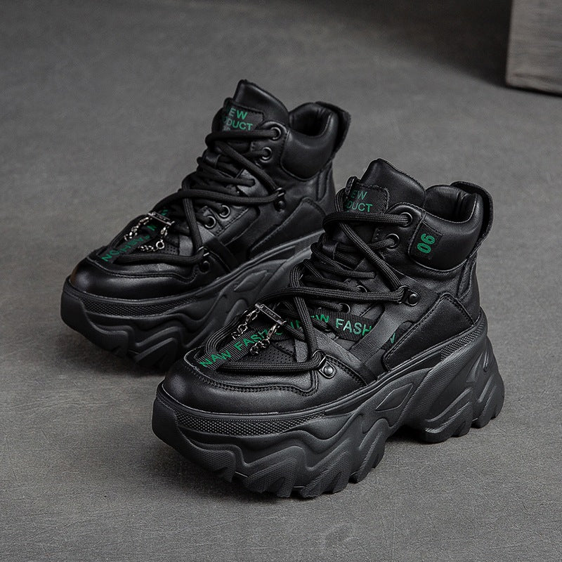 Women's First Layer Cowhide Retro Platform Elevator Boots