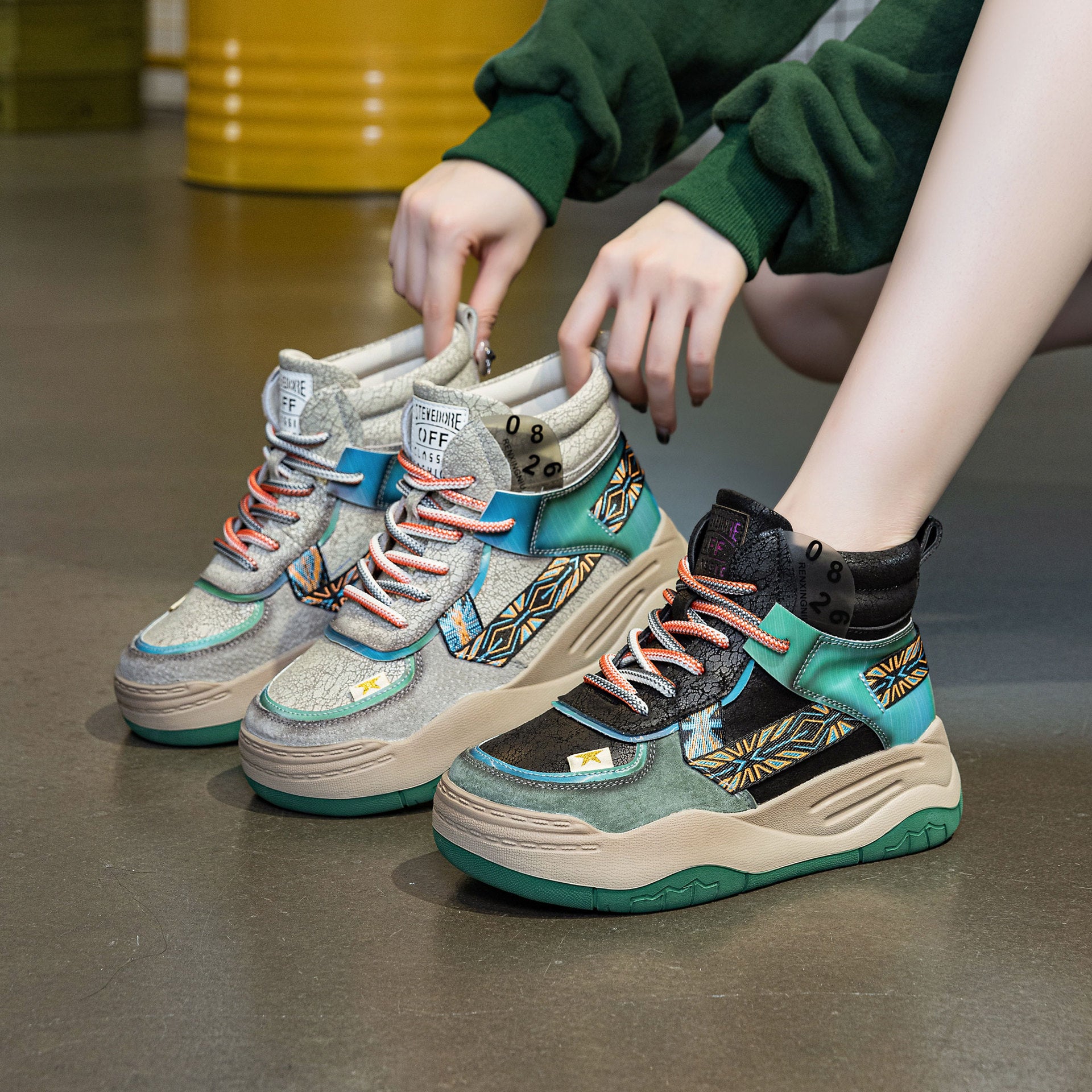 Women's First Layer Cowhide Retro Style Platform White Women's Shoes