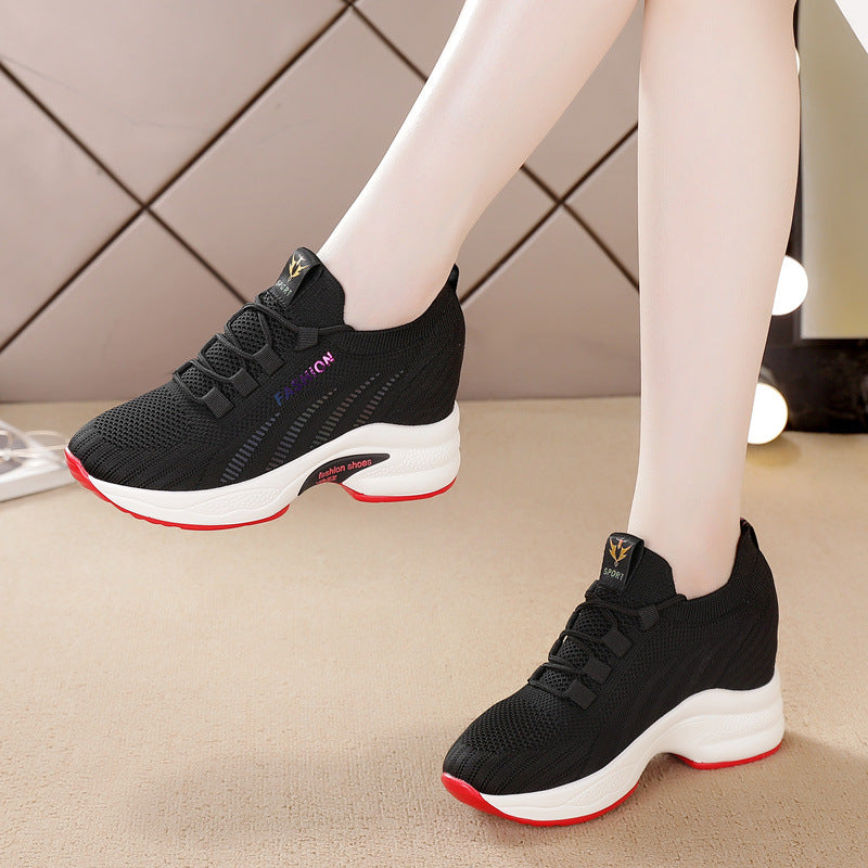 Women's Flying Woven Breathable Autumn Wedge Thick Sneakers