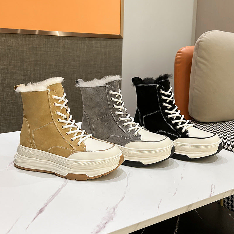 Women's Fur Integrated Fleece-lined Warm Slugged Bottom Northeast Snow Boots