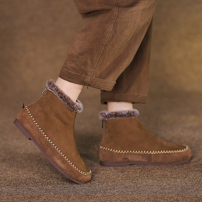 Women's Fur Warm Frosted Cowhide Ankle Slimming Boots