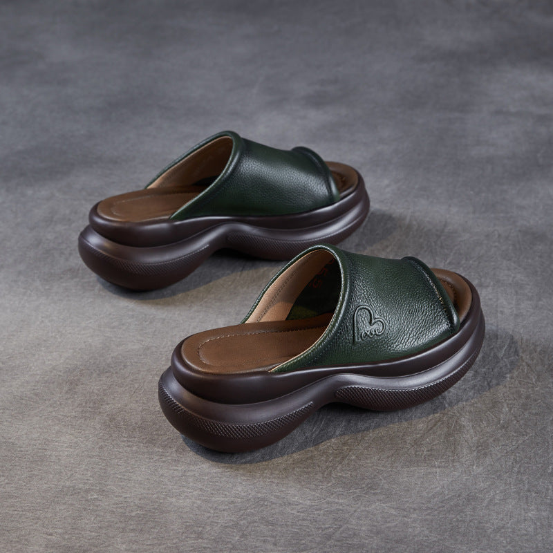 Women's Genuine Peep Toe Roman Platform Cowhide Retro Slippers