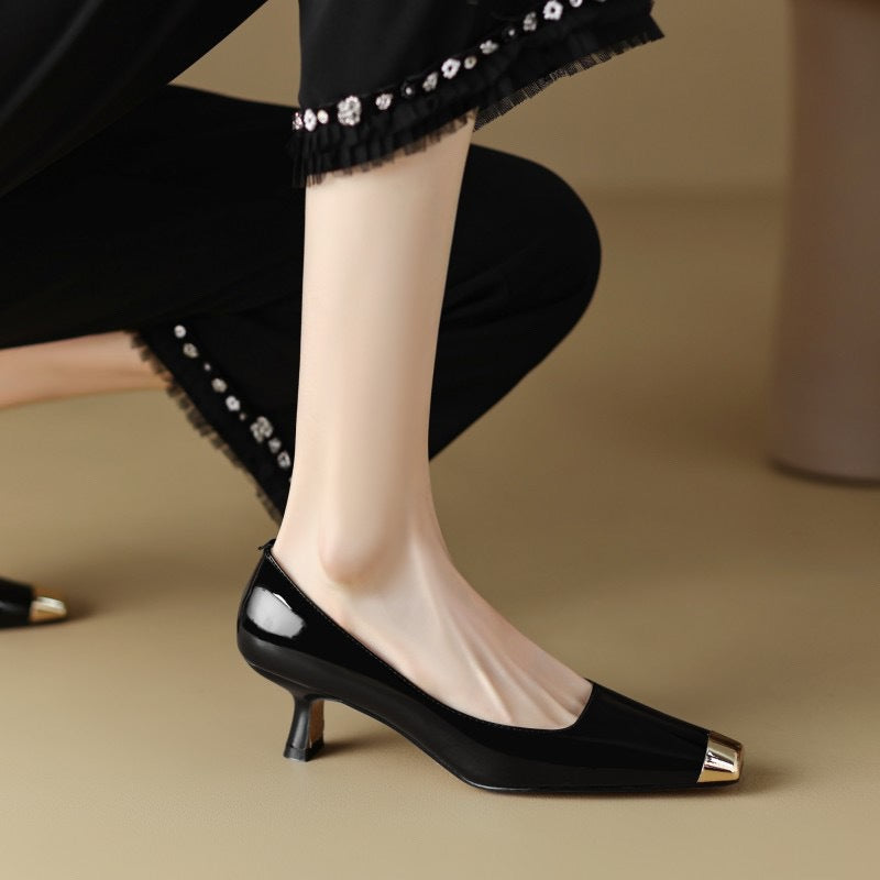 Women's Genuine Wine Red Patent Cowhide Classy High Metal Women's Shoes