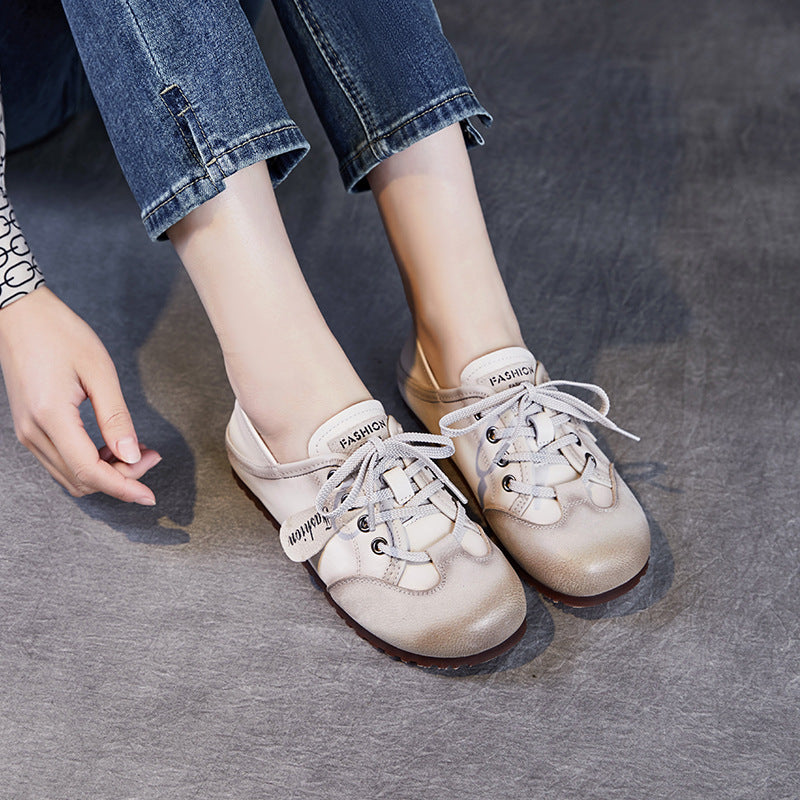 Women's German Training Spring Retro Flat Bottom White Sneakers